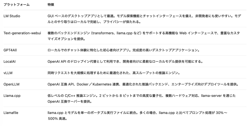 - ローカルホストされた LLM の実行